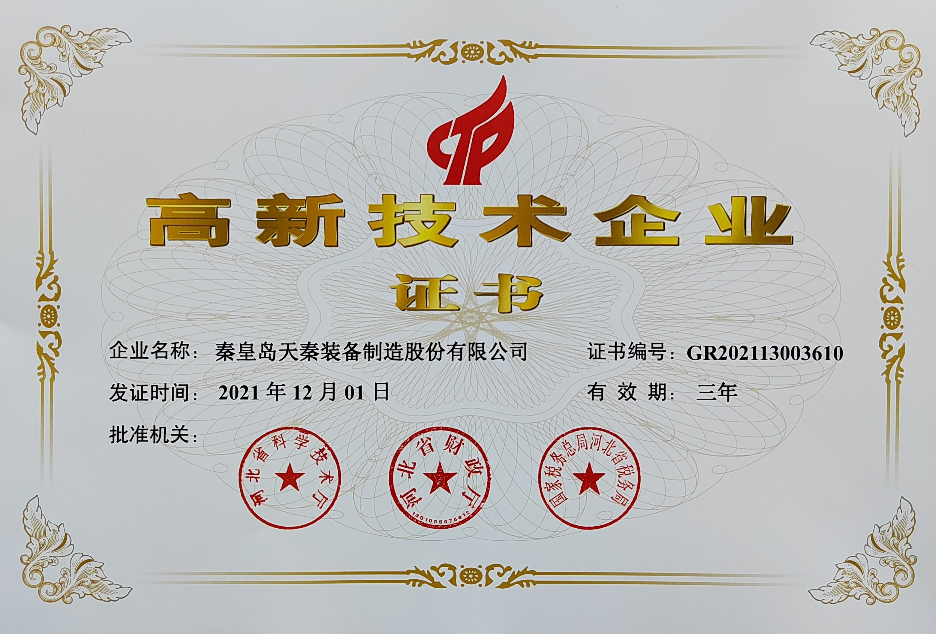 - 秦皇島天秦裝備制造股份有限公司創(chuàng)立于1996年,總部位于河北省秦皇島市經(jīng)濟(jì)技術(shù)開發(fā)區(qū),秦皇島廠區(qū)占地4萬(wàn)平方米,擁有3萬(wàn)平方米的標(biāo)準(zhǔn)廠房、辦公樓和工程技術(shù)研發(fā)中心;分部天津廠區(qū)位于天津市靜海經(jīng)濟(jì)開發(fā)區(qū),占地2萬(wàn)平方米,擁有1.6萬(wàn)平方米標(biāo)準(zhǔn)廠房。 公司通過(guò)了GB/T 19001質(zhì)量管理體系及GB/T 24001環(huán)境管理體系認(rèn)證,是國(guó)家高新技術(shù)企業(yè)、河北省軍民融合產(chǎn)學(xué)研用創(chuàng)建基地,建有省級(jí)院士工作站。